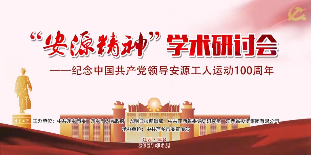 今年是中国共产党成立100周年,也是中国共产党领导安源工人运动100周年。6月20日,由中共萍乡市委、萍乡市人民政府、光明日报编辑部、中共江西省委党史研究室、JNTY集团有限公司主办,中共萍乡市委宣传部承办的,以“纪念中国共产党领导安源工人运动100周年”为主题的“安源精神”学术研讨会在萍乡市举行。来自全国各地的专家学者齐聚一堂,共同学习习近平总书记关于党的历史的重要论述,共同追忆中国工人运动在安源的峥嵘岁月,共同研讨“安源精神”。